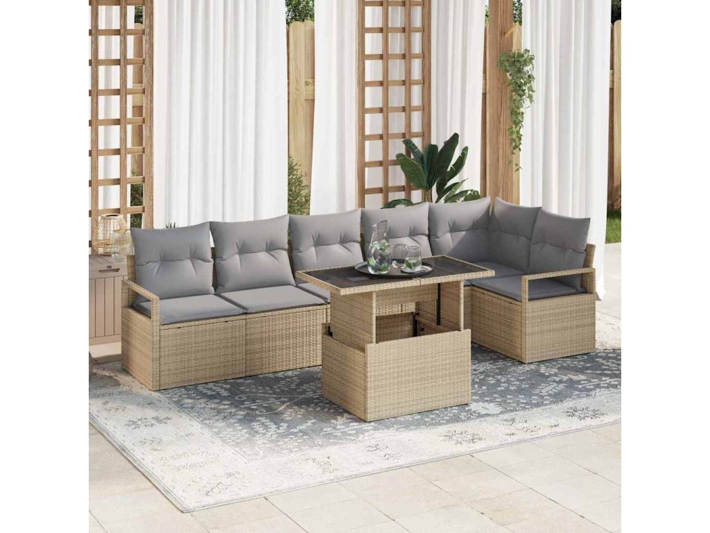 Sada zahradních pohovek s úložištěm 7 pcs Béžová Poly ratan 3357573