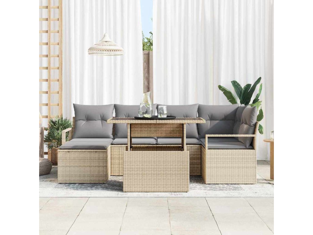 Sada zahradních pohovek s úložištěm 7 pcs Béžová Poly ratan 3357593