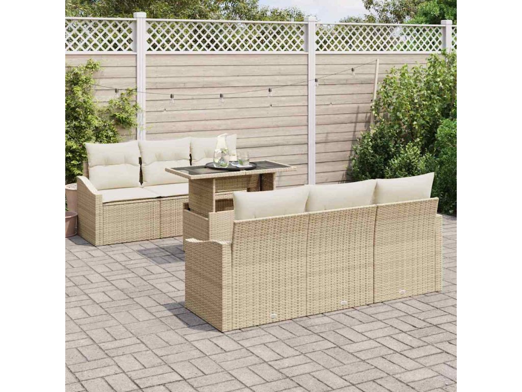 Sada zahradních pohovek s úložištěm 7 pcs Béžová Poly ratan 3357664