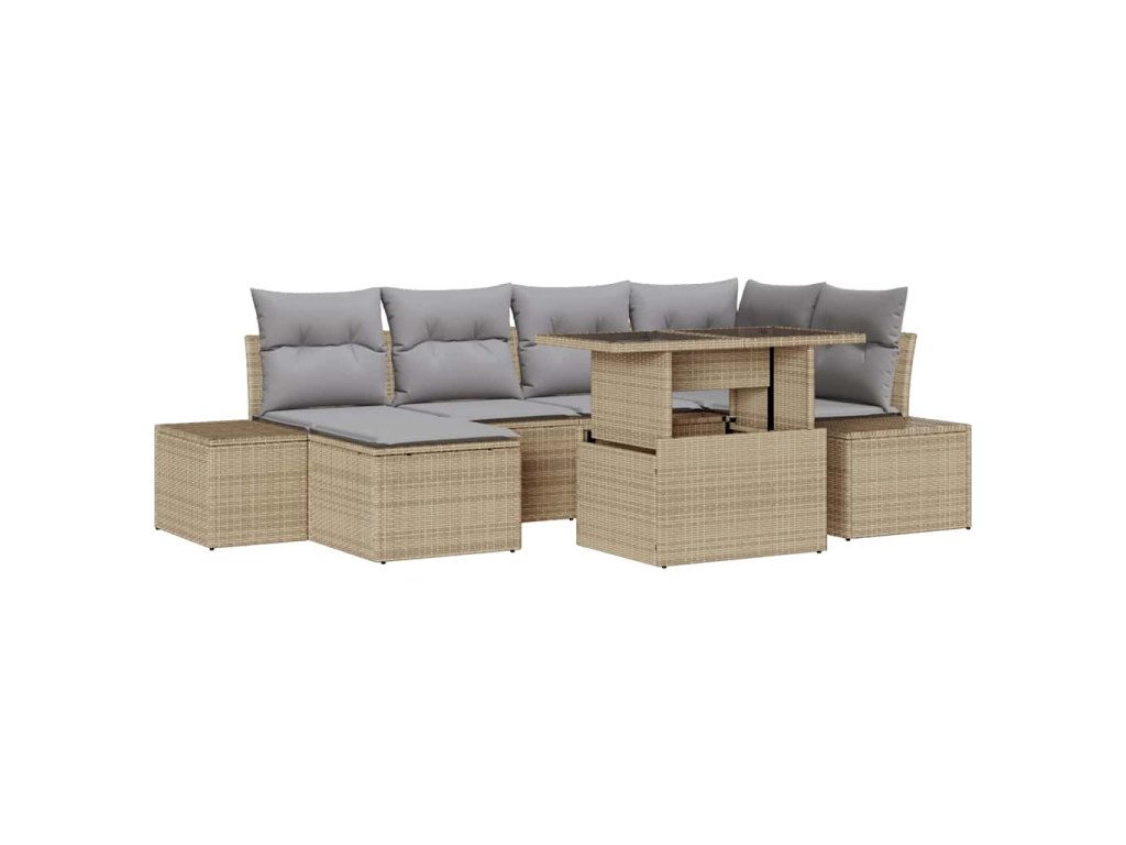 Sada zahradních pohovek s úložištěm 7 pcs Béžová Poly ratan 3357953