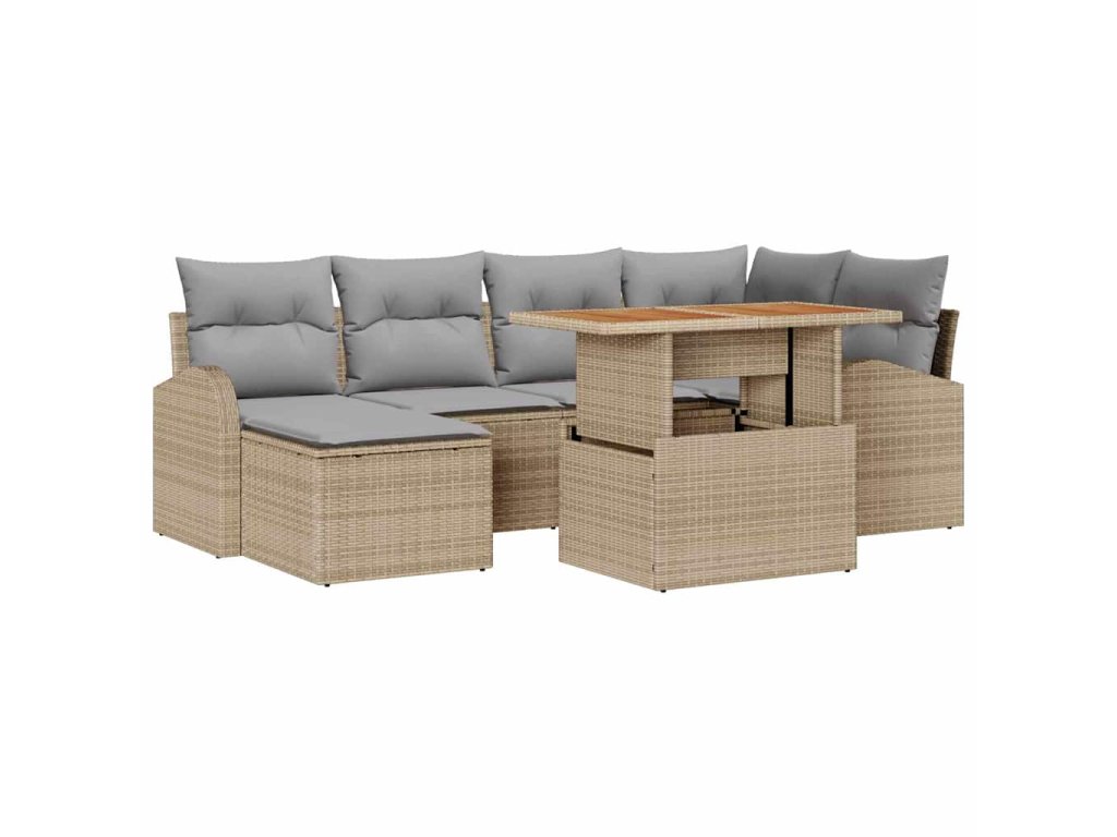 Sada zahradních pohovek s úložištěm 7 pcs Béžová Poly ratan 3358345
