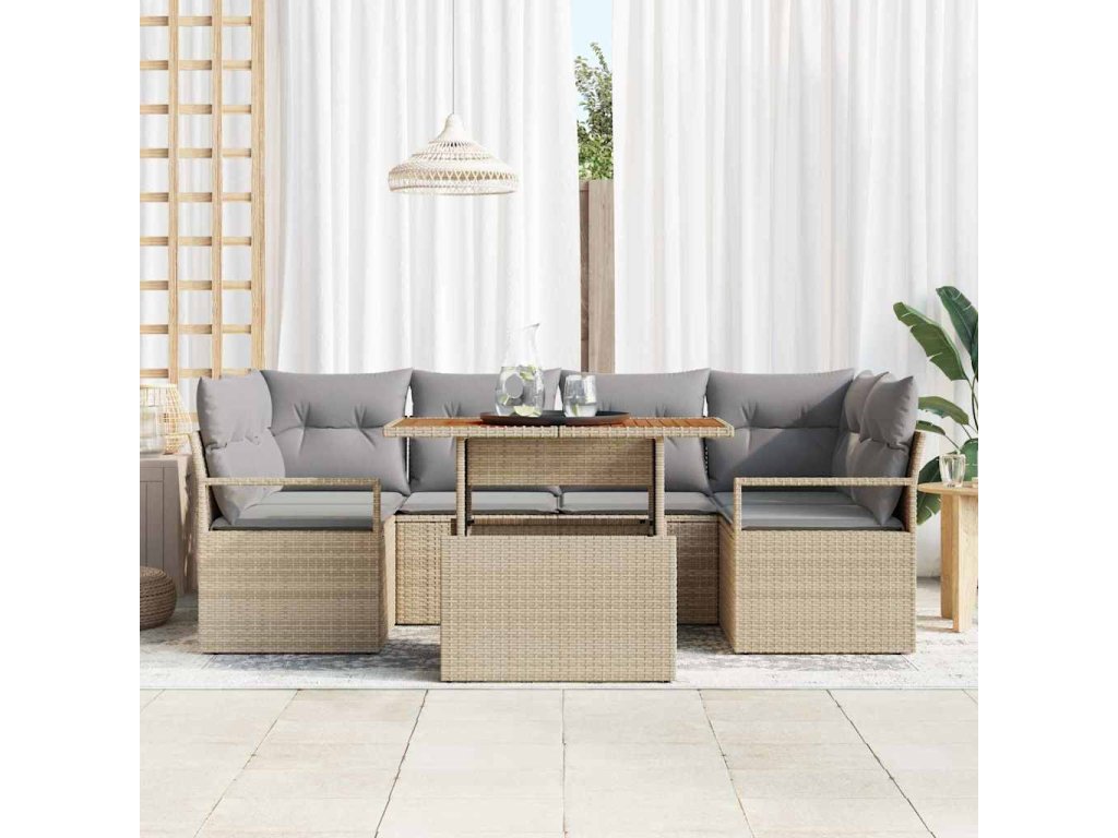 Sada zahradních pohovek s úložištěm 7 pcs Béžová Poly ratan 3358401