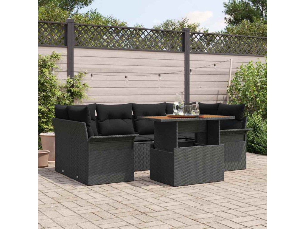Sada zahradních pohovek s úložištěm 7 pcs Černá Poly ratan 3358025