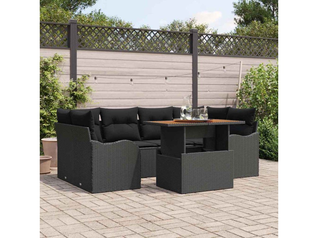Sada zahradních pohovek s úložištěm 7 pcs Černá Poly ratan 3358151