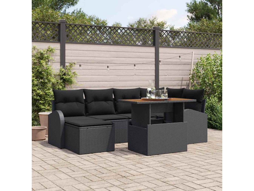 Sada zahradních pohovek s úložištěm 7 pcs Černá Poly ratan 3358347