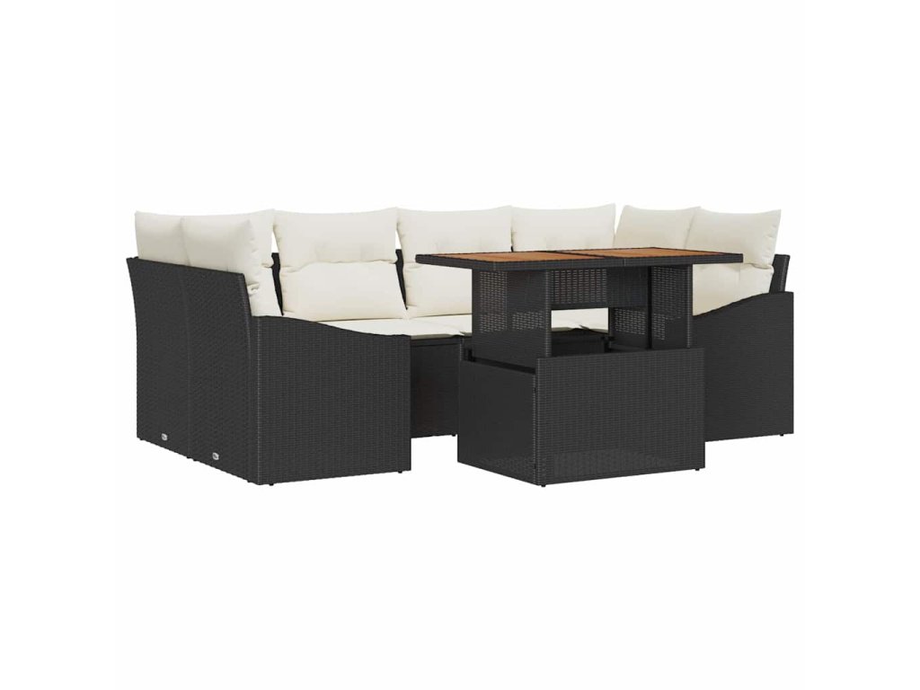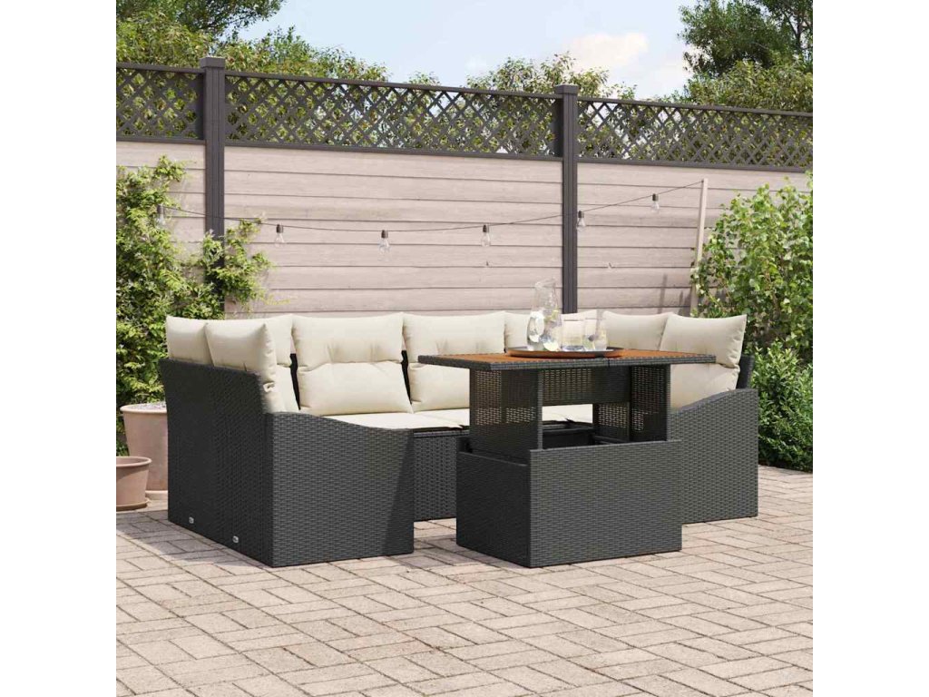 Sada zahradních pohovek s úložištěm 7 pcs Černá Poly ratan 3358525