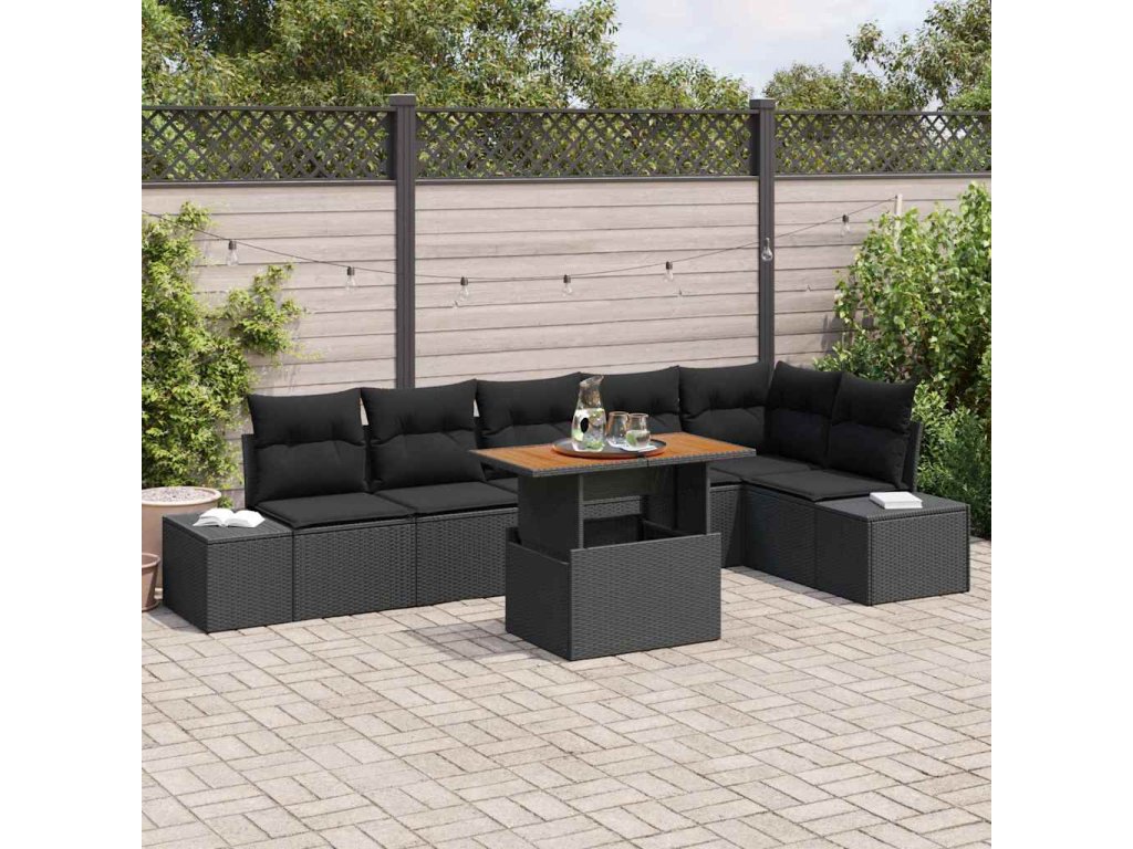 Sada zahradních pohovek s úložištěm 7 pcs Černá Poly ratan 3358711