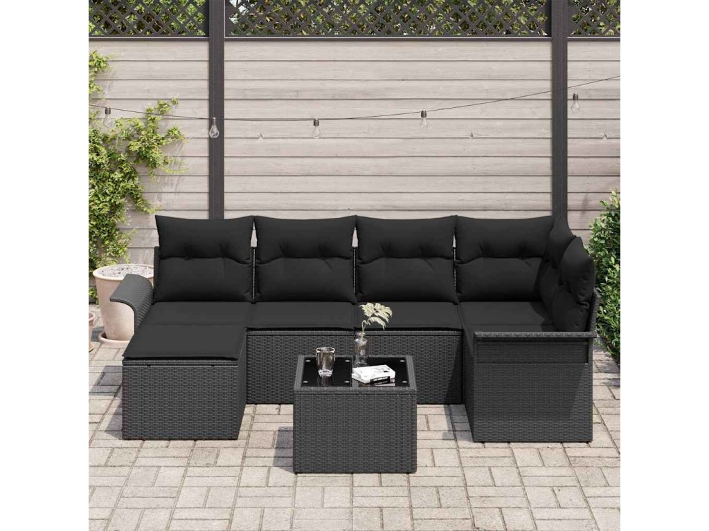 Sada zahradních pohovek s úložištěm 7 pcs Černá polyratan 3354112