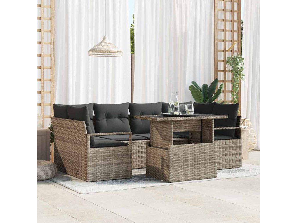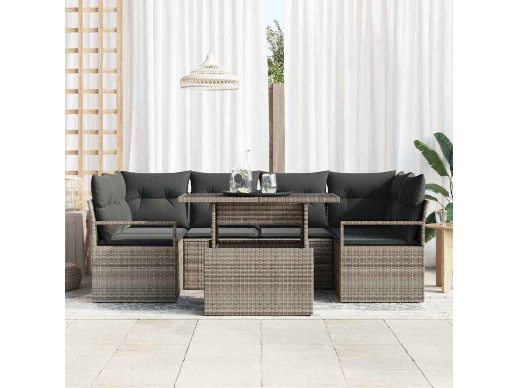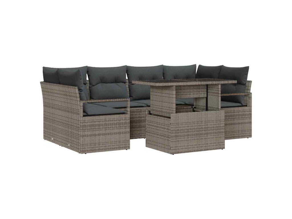 Sada zahradních pohovek s úložištěm 7 pcs Šedá Poly ratan 3357492