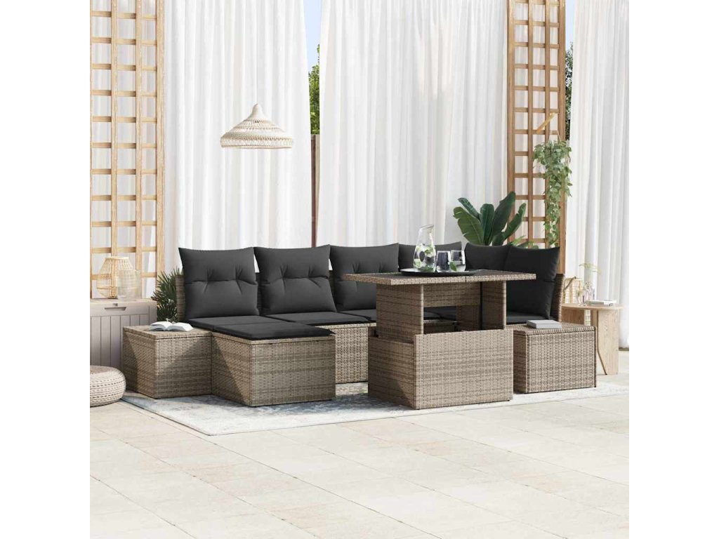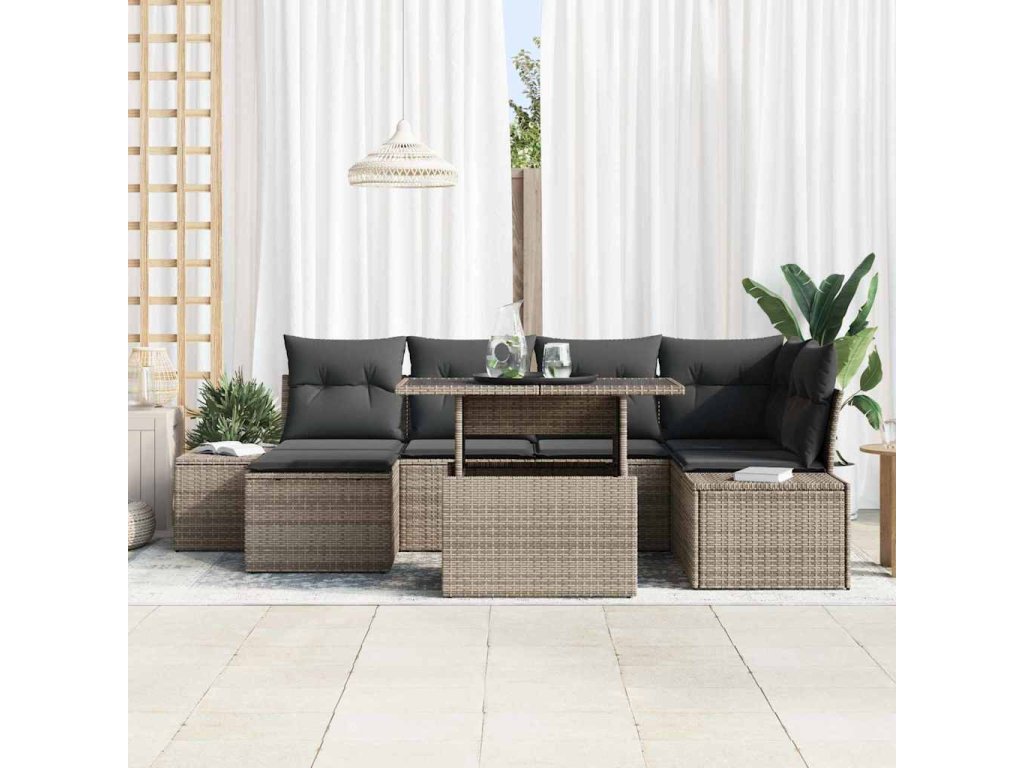 Sada zahradních pohovek s úložištěm 7 pcs Šedá Poly ratan 3357952