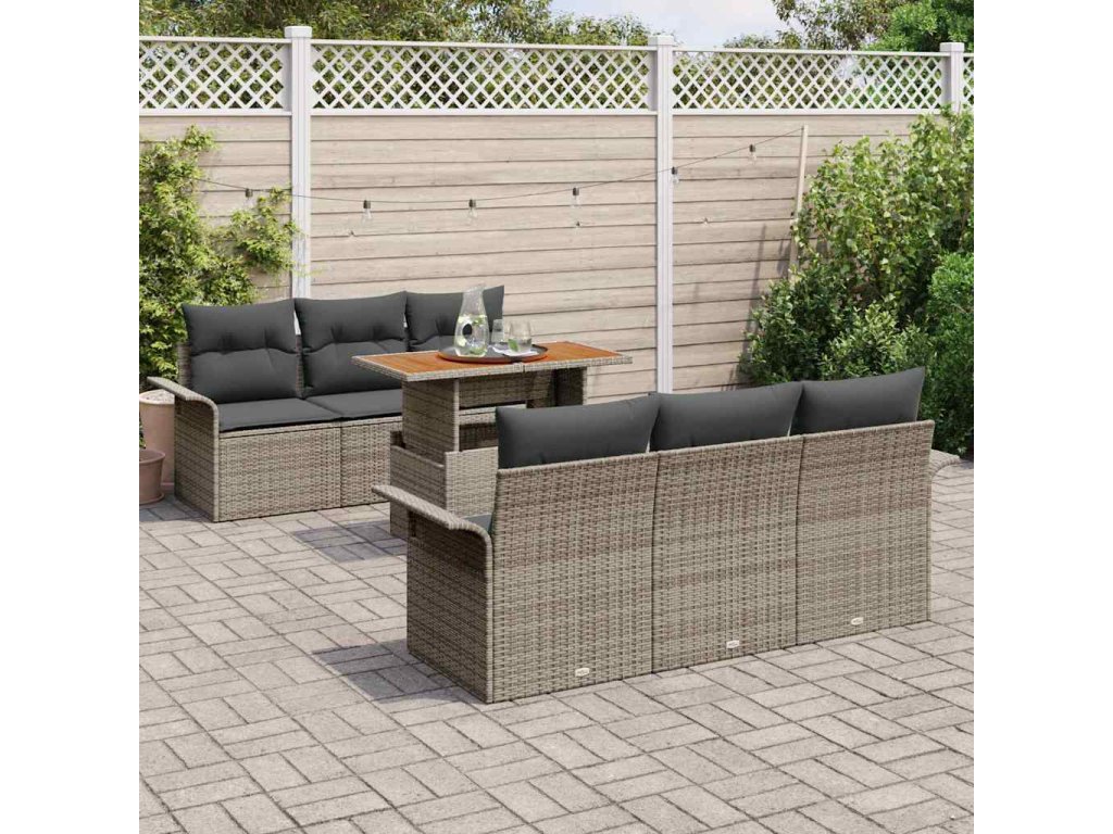 Sada zahradních pohovek s úložištěm 7 pcs Šedá Poly ratan 3358015