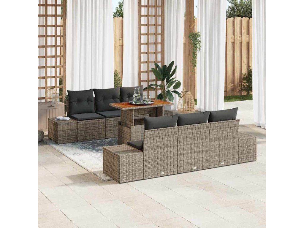Sada zahradních pohovek s úložištěm 7 pcs Šedá Poly ratan 3358645