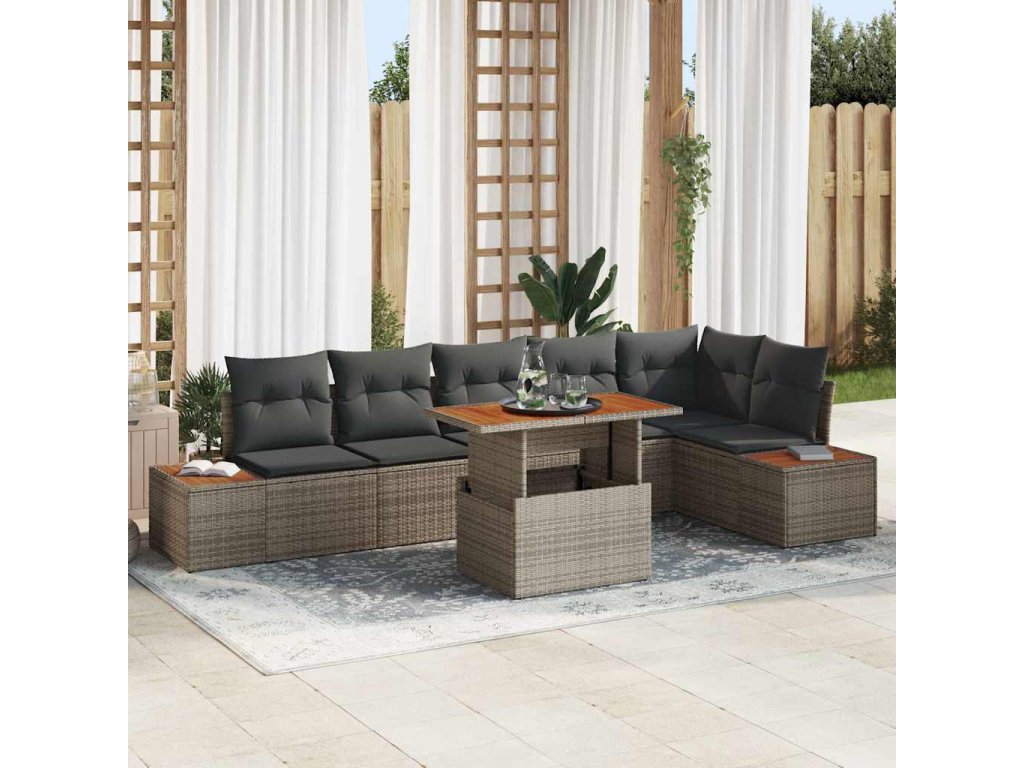 Sada zahradních pohovek s úložištěm 7 pcs Šedá Poly ratan 3358813