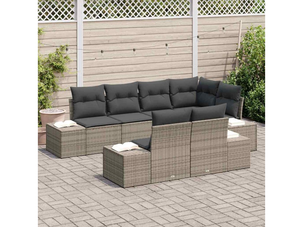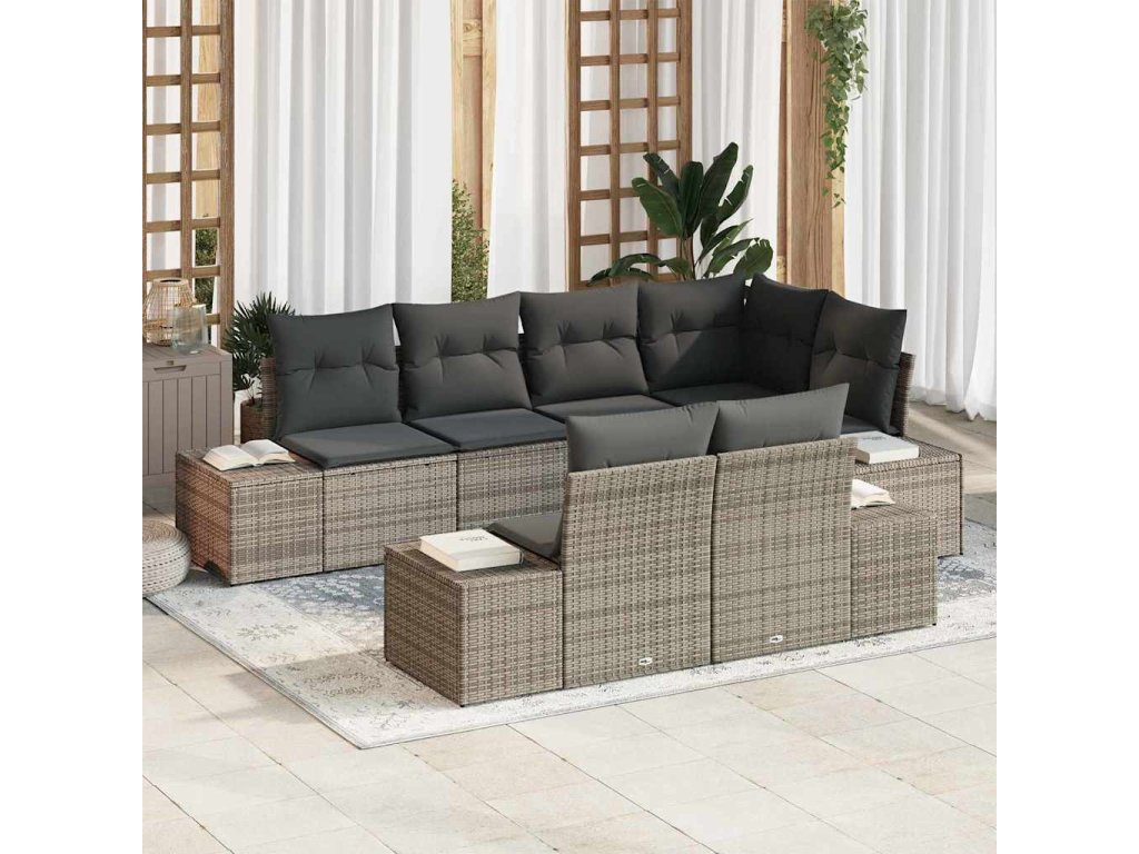 Sada zahradních pohovek s úložištěm 7 pcs Šedá polyratan 3355768