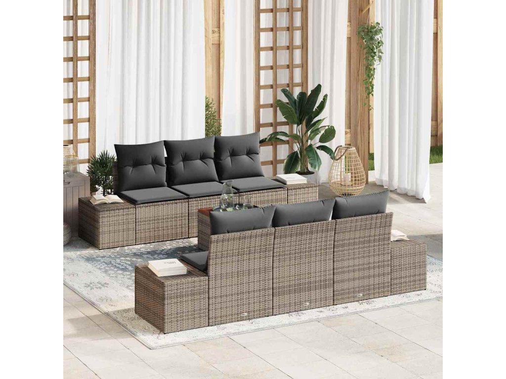 Sada zahradních pohovek s úložištěm 7 pcs Šedá polyratan 3356571