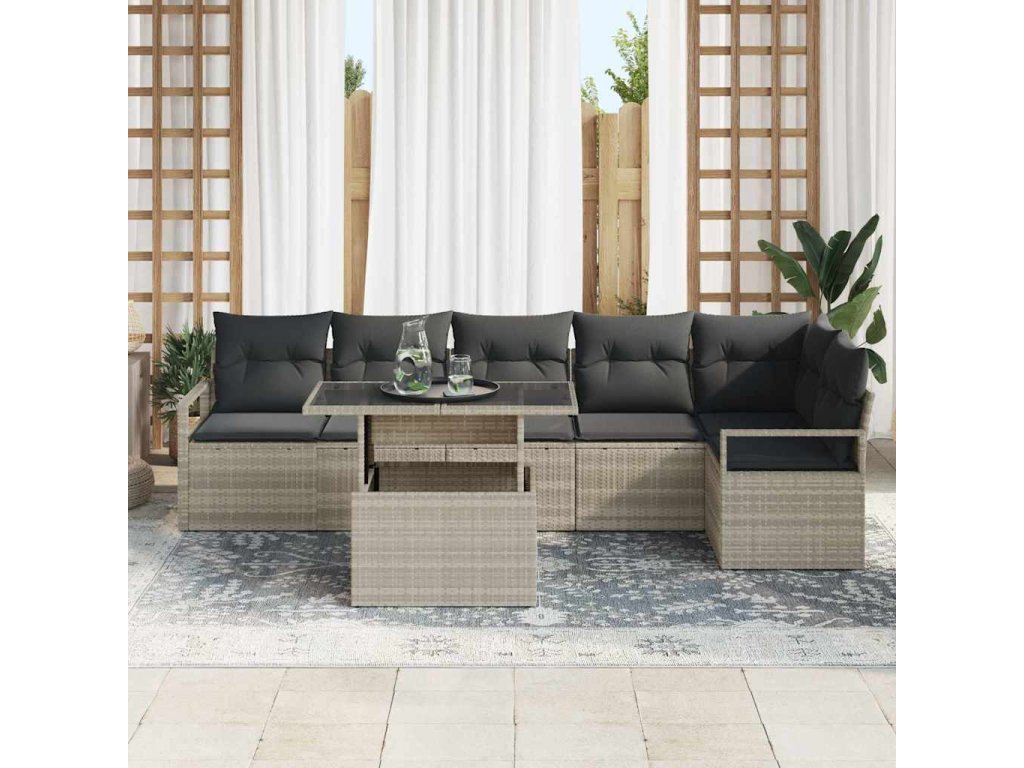 Sada zahradních pohovek s úložištěm 7 pcs Světle šedá polyratan 3348838