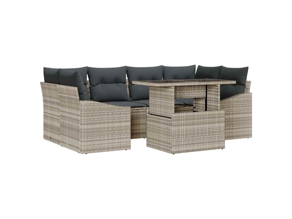 Sada zahradních pohovek s úložištěm 7 pcs Světle šedá polyratan 3348938