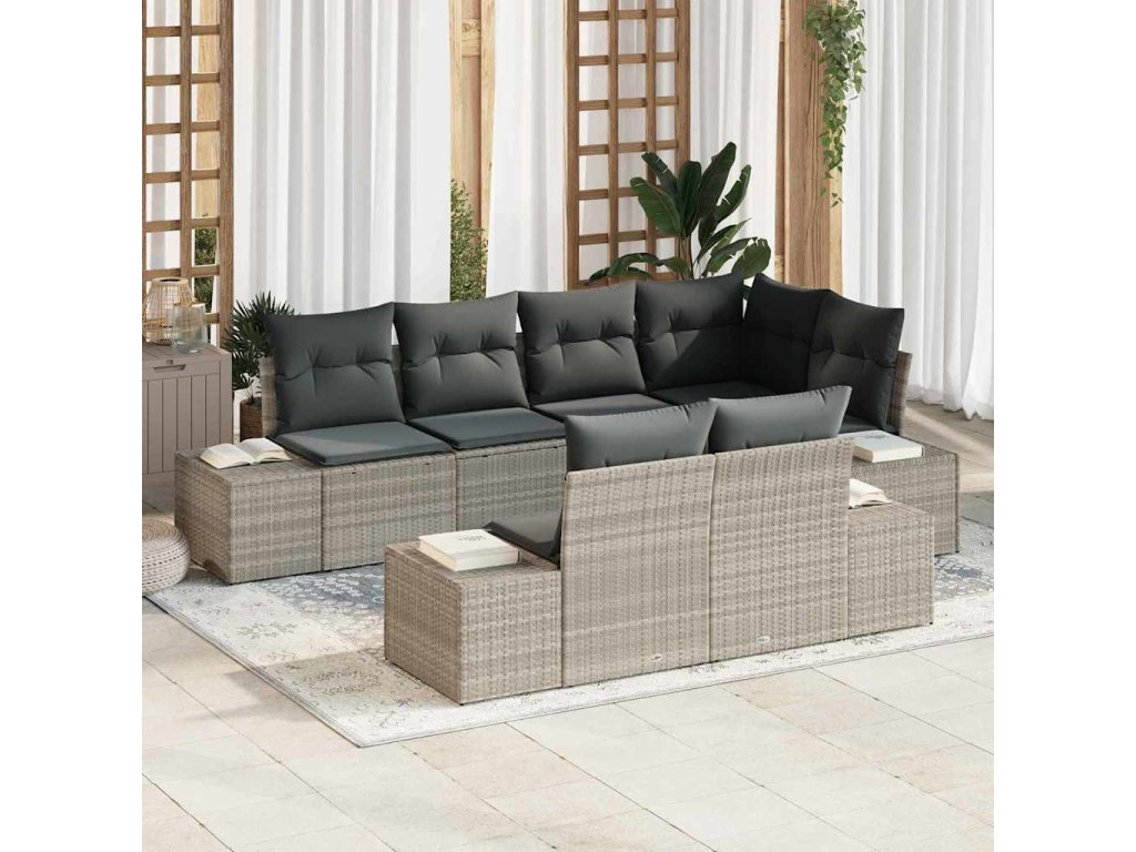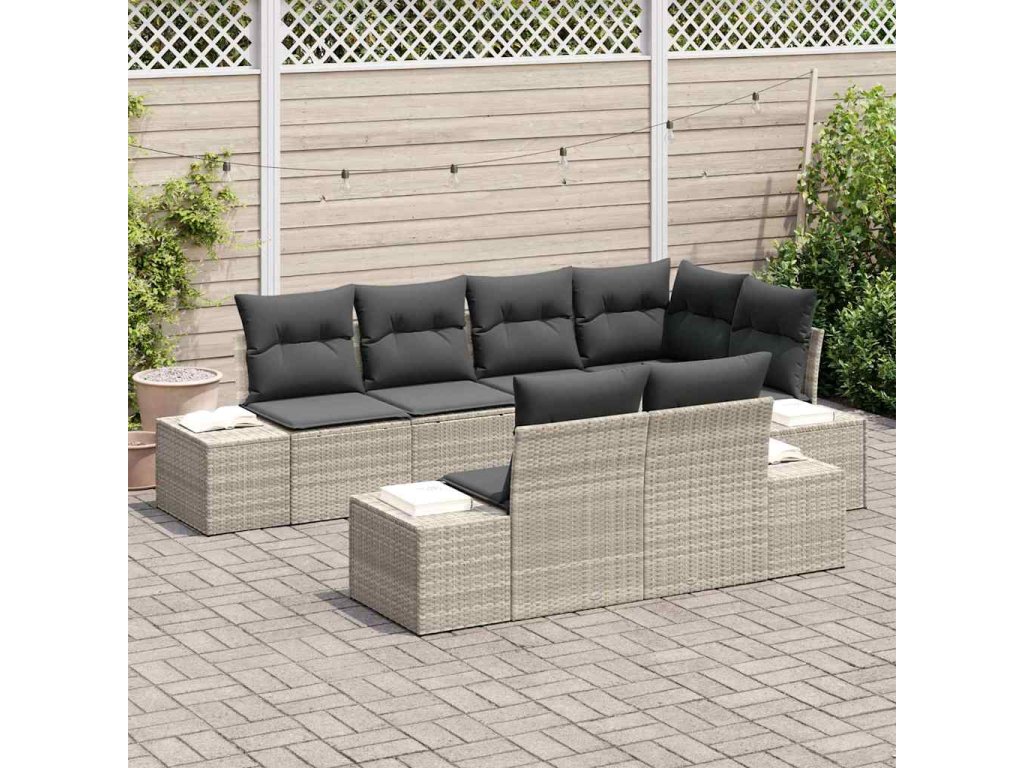 Sada zahradních pohovek s úložištěm 7 pcs Světle šedá polyratan 3355771