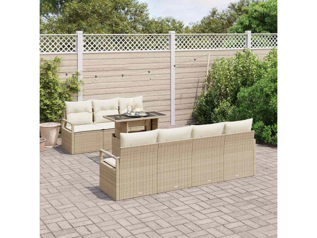 Sada zahradních pohovek s úložištěm 8 pcs Béžová Poly ratan 3357504