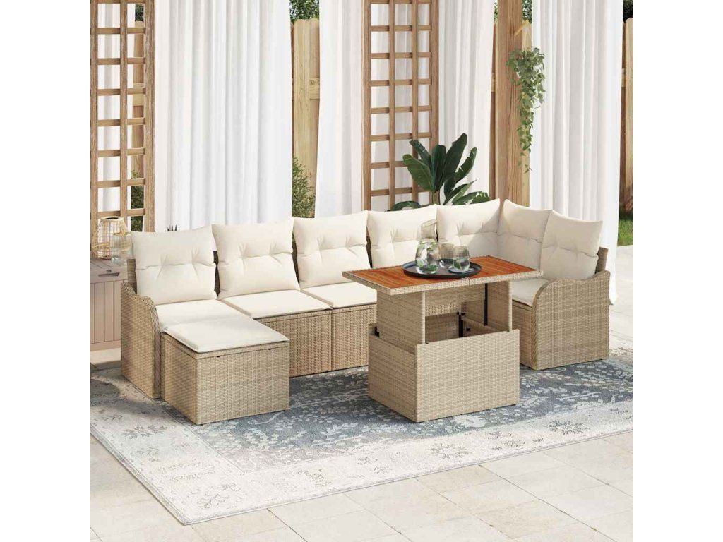 Sada zahradních pohovek s úložištěm 8 pcs Béžová Poly ratan 3358227