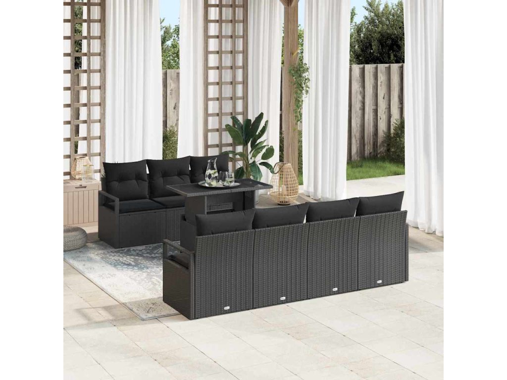 Sada zahradních pohovek s úložištěm 8 pcs Černá polyratan 3348769