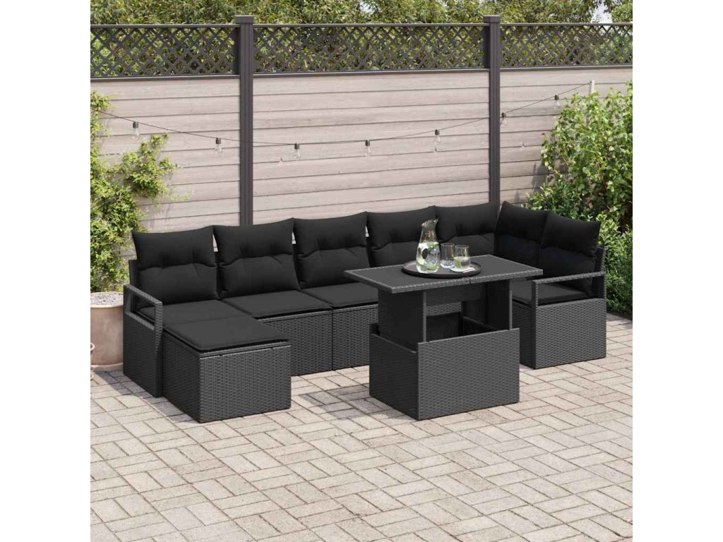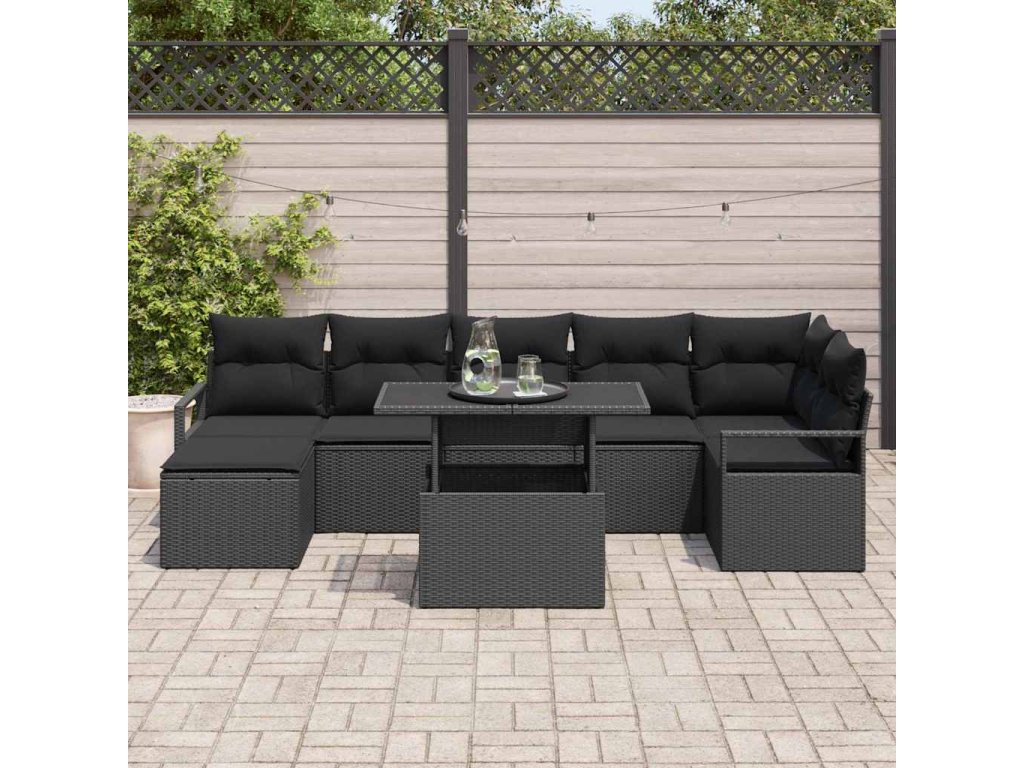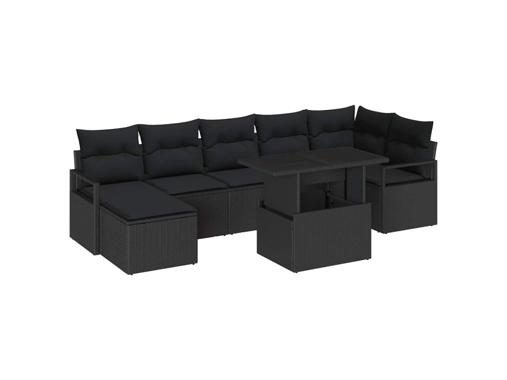 Sada zahradních pohovek s úložištěm 8 pcs Černá polyratan 3348869