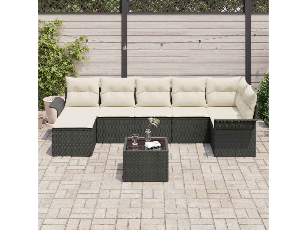 Sada zahradních pohovek s úložištěm 8 pcs Černá polyratan 3354126