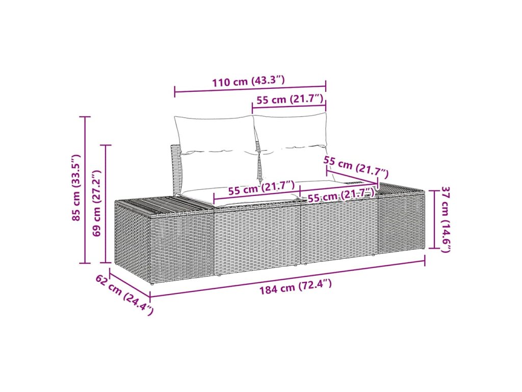 - 4 x boční sofa: 92 x 62 x 69 cm (D x Š x V)