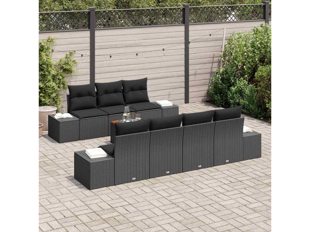 Sada zahradních pohovek s úložištěm 8 pcs Černá polyratan 3356588