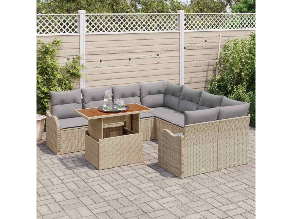 Sada zahradních pohovek s úložištěm 9 pcs Béžová Poly ratan 3358177