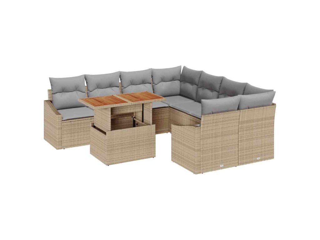 Sada zahradních pohovek s úložištěm 9 pcs Béžová Poly ratan 3358555