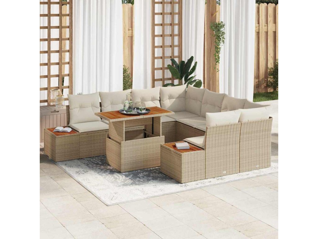 Sada zahradních pohovek s úložištěm 9 pcs Béžová Poly ratan 3358795
