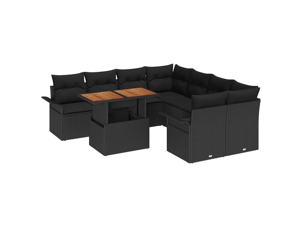 Sada zahradních pohovek s úložištěm 9 pcs Černá Poly ratan 3358053