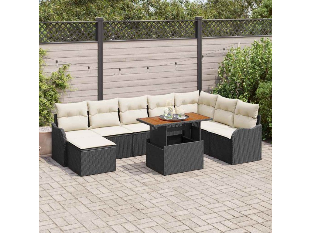 Sada zahradních pohovek s úložištěm 9 pcs Černá Poly ratan 3358231