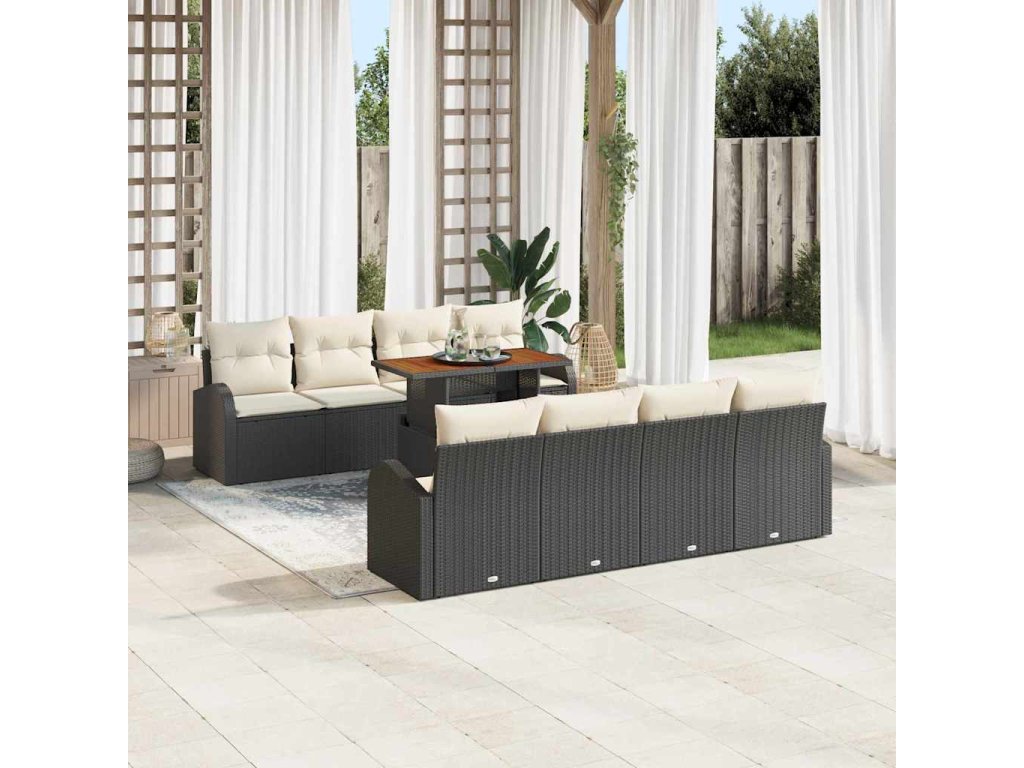 Sada zahradních pohovek s úložištěm 9 pcs Černá Poly ratan 3358294