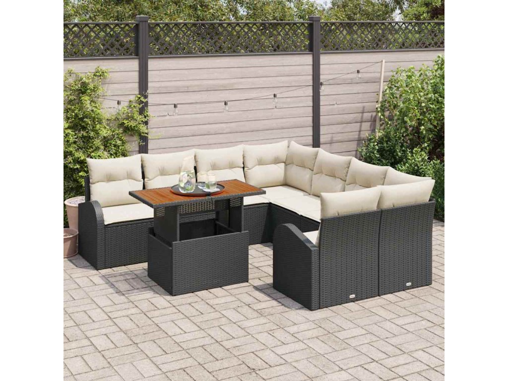 Sada zahradních pohovek s úložištěm 9 pcs Černá Poly ratan 3358301