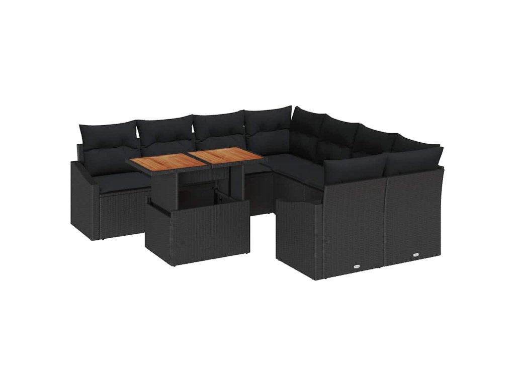 Sada zahradních pohovek s úložištěm 9 pcs Černá Poly ratan 3358557
