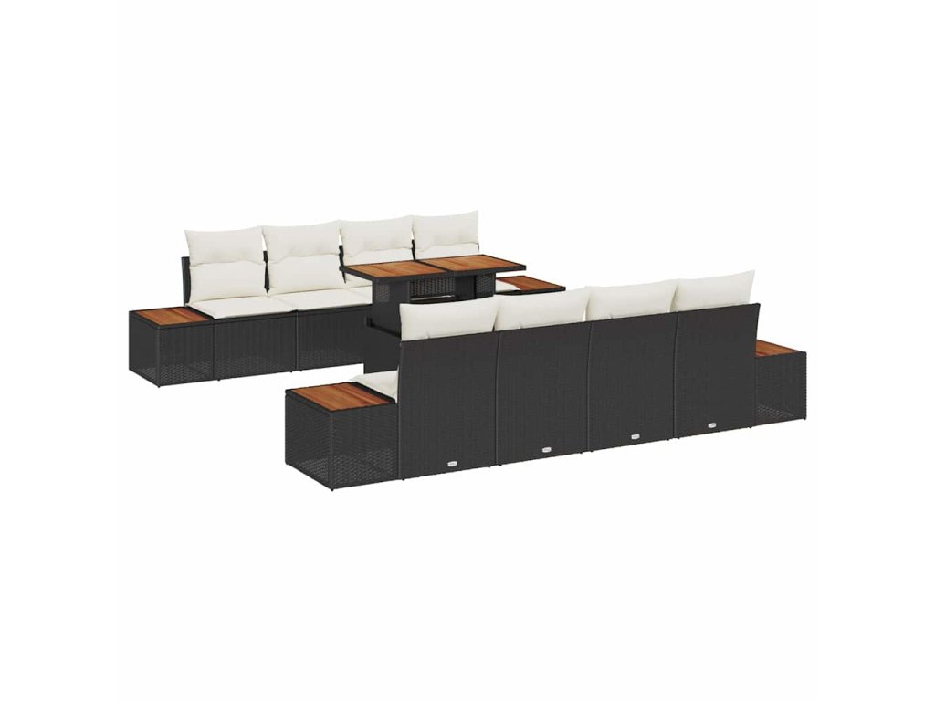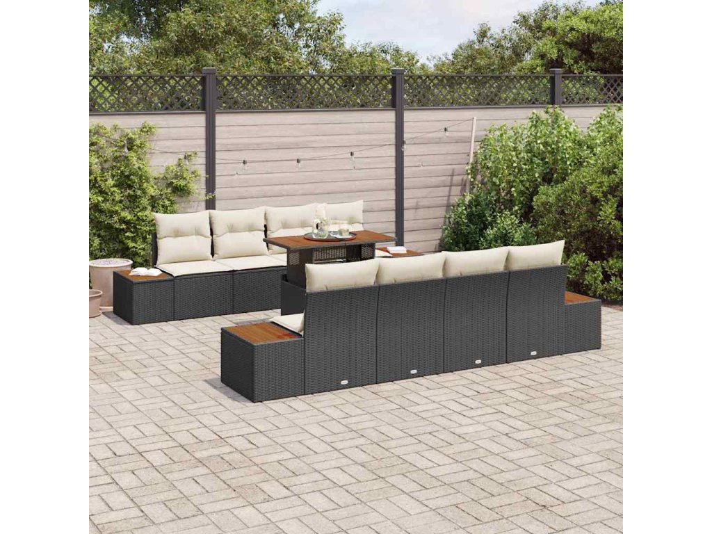 Sada zahradních pohovek s úložištěm 9 pcs Černá Poly ratan 3358786