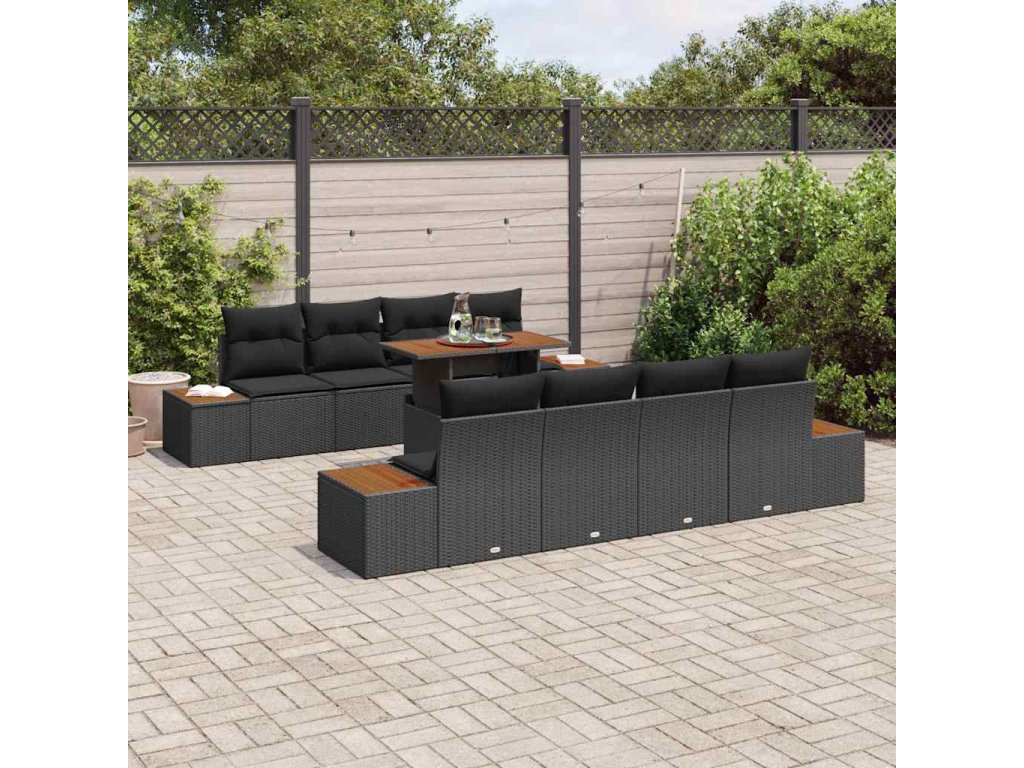 Sada zahradních pohovek s úložištěm 9 pcs Černá Poly ratan 3358787