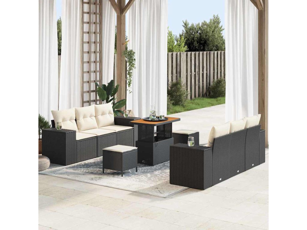 Sada zahradních pohovek s úložištěm 9 pcs Černá Poly ratan 3361960