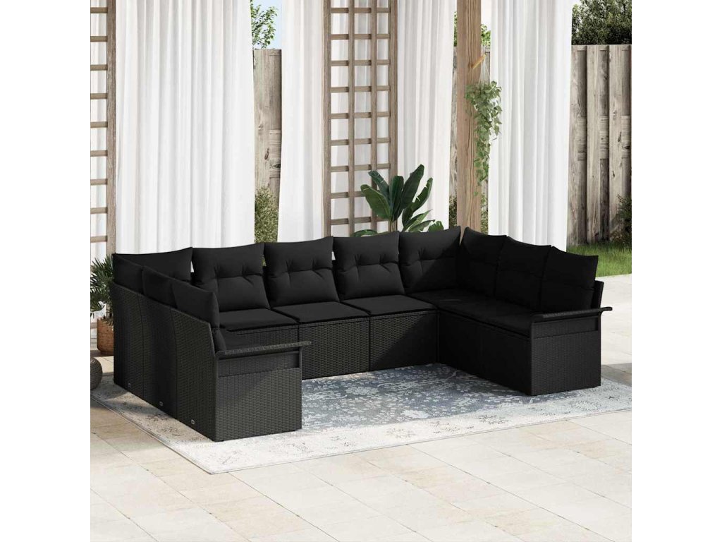 Sada zahradních pohovek s úložištěm 9 pcs Černá polyratan 3354192
