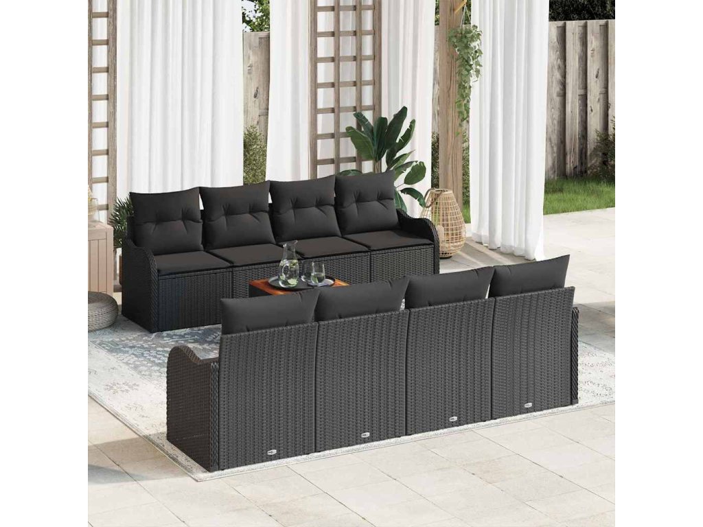 Sada zahradních pohovek s úložištěm 9 pcs Černá polyratan 3356098
