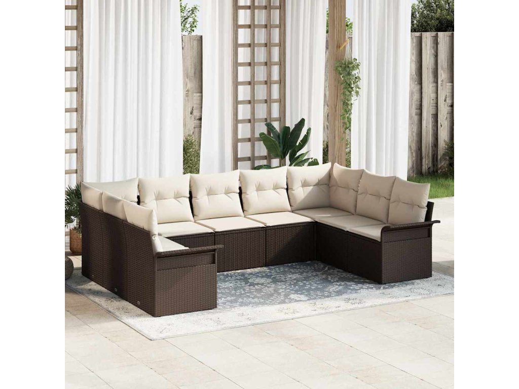 Sada zahradních pohovek s úložištěm 9 pcs Hnědá polyratan 3354187