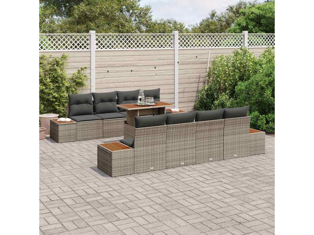 Sada zahradních pohovek s úložištěm 9 pcs Šedá Poly ratan 3358788