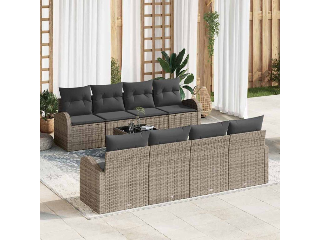 Sada zahradních pohovek s úložištěm 9 pcs Šedá polyratan 3354638