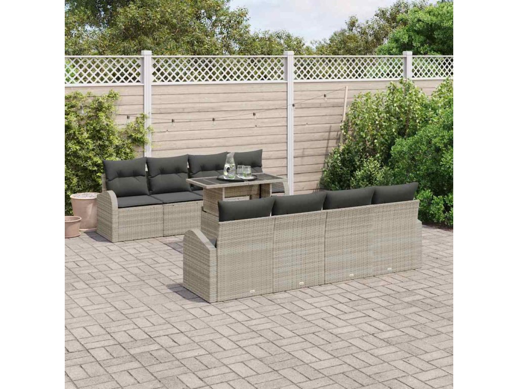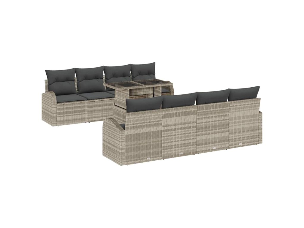 Sada zahradních pohovek s úložištěm 9 pcs Světle šedá polyratan 3348608
