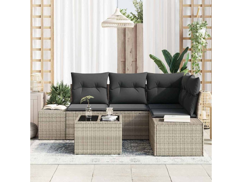 - Složení materiálu: Tato zahradní pohovková souprava pěkně spojuje poly ratan s masivním akáciovým dřevem. Poly ratan nabízí moderní vzhled a je odolný vůči nepřízni počasí. Akáciové dřevo dodává teplo a klasický styl, takže je to skvělý doplněk k jakékoli zahradě.