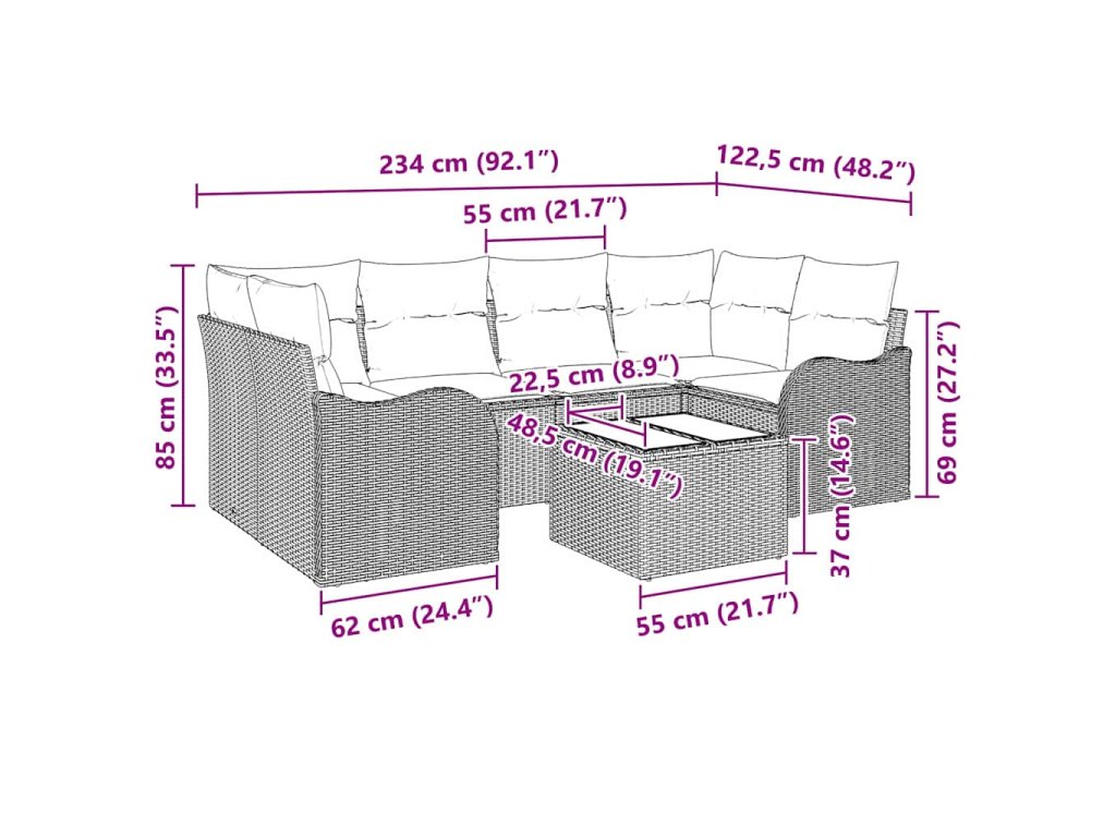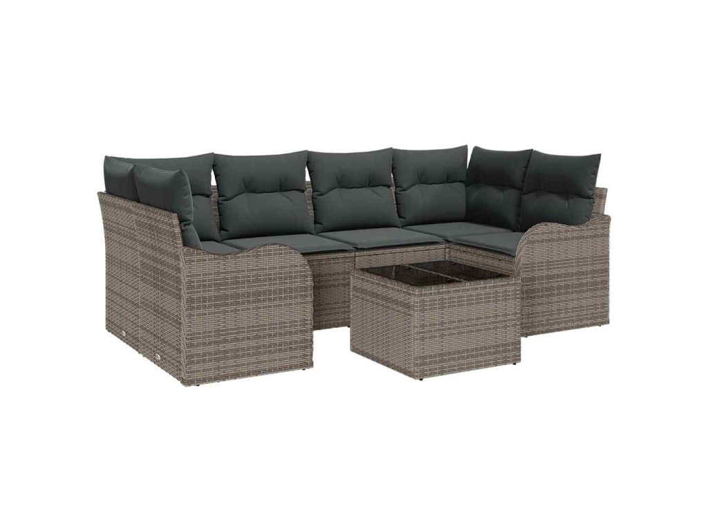 - Materiály z poly ratanu a oceli Sedací souprava se chlubí robustní konstrukcí z poly ratanu a práškované oceli, která spojila vzhled s trvanlivostí. Poly ratan dodává vizuální přitažlivost, zatímco ocelový rám zajistí stabilitu. Tato kombinace povzbuzuje luxusní dojem a zajišťuje odolnost vůči povětrnostním vlivům, takže si užijete dlouhotrvající radost.