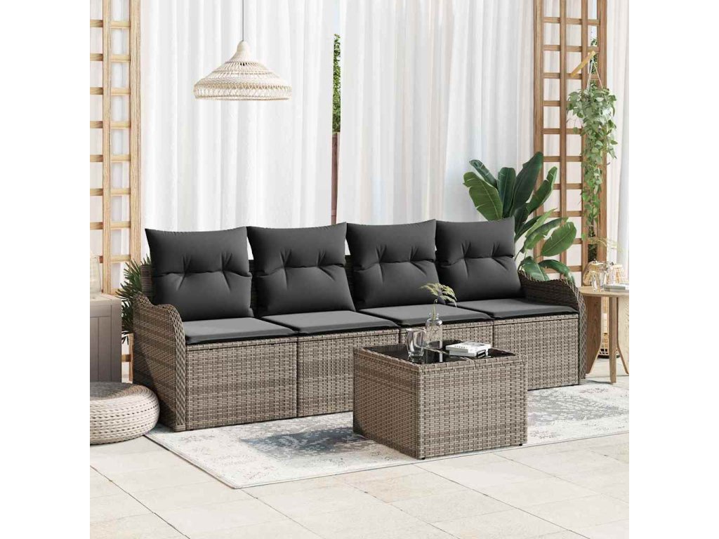 - Zahrnuté komponenty: Tato souprava zahrnuje dvě středové sedadla, dvě koncové pohovky a stůl z tvrzeného skla, takže si můžeš sezení uspořádat přesně podle svých představ. Každý kousek se skvěle doplňuje, takže tvoje venkovní prostor vypadá konzistentně. Hotový a elegantní zadní panel dává možnost flexibilního uspořádání bez kompromisů v designu.