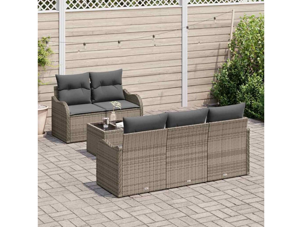 - Zahrnuté komponenty: Souprava obsahuje střední sedadlo, čtyři pohovky s opěrkami a robustní stůl. Skleněná deska stolu přidává elegantní a trvanlivý povrch pro nápoje a dekorace. Křivky a opěrky z poly ratanu zvyšují pohodlí pro dlouhé posezení. Ocelové nohy garantují pevnou oporu na jakémkoliv povrchu.